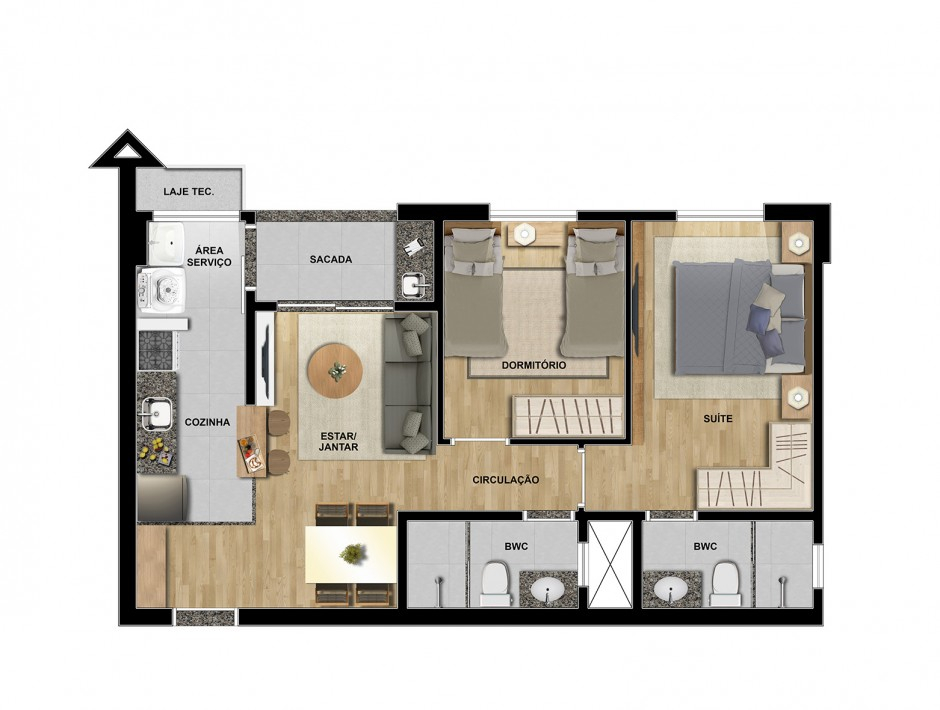 Ótima localização e área de lazer completa para todas as idades. Apartamentos de 2 e 3 dormitórios, todos com suíte e 2 vagas de garagem!
